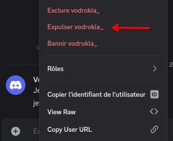Pour kick via la fonction de base discord, vous allez vouloir suivre les étapes suivantes :